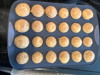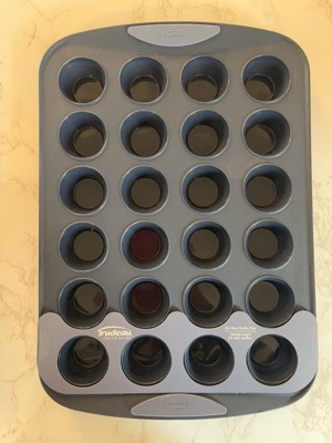 [This review was collected as part of a promotion.] The Trudeau Silicone Mini Muffin Pan is a fantastic addition to any baking collection, especially for those who love making bite-sized treats. The silicone construction ensures an easy, non-stick release, meaning muffins, cupcakes, and other mini desserts pop out effortlessly without the need for excessive greasing or liners. The reinforced frame adds much-needed stability, making it easier to transfer in and out of the oven without spills. One of the standout features is its easy-to-clean surface—it’s dishwasher safe, which is a big plus for hassle-free cleanup. The 24-cup capacity is perfect for baking in larger batches, whether for parties, meal prep, or just fun baking sessions. The only minor downside is that, like most silicone bakeware, it can be a bit flexible, requiring extra care when moving it while full. However, the added grip handles help with this issue. Overall, this is a high-quality, convenient, and well-designed mini muffin pan that makes baking easier and more enjoyable. A great choice for both beginner and experienced bakers!