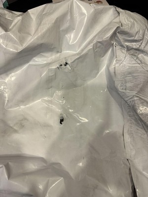 Poorly packaged, arrived dirty and stained. Holes in packaging.