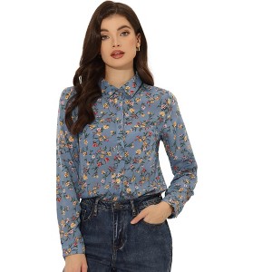 Allegra K Women's Point Collar Long Button Sleeve Button Down Floral Shirt - 1 of 4