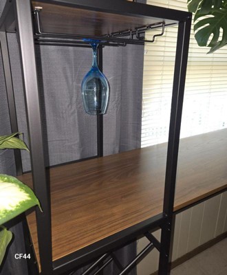[This review was collected as part of a promotion.] This Jura metal wine bar/ table I received is great. It is sturdy metal easy to assemble (did alone). I like the unit overall. Love that it has wine glass racks. I am going to get a couple of bar stools to go with it. The color of the shelving is a nice walnut color. I would recommend.