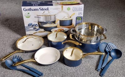 Gotham Steel Navy 15-Pc Ultra Nonstick Ceramic Cookware Set with Utensils