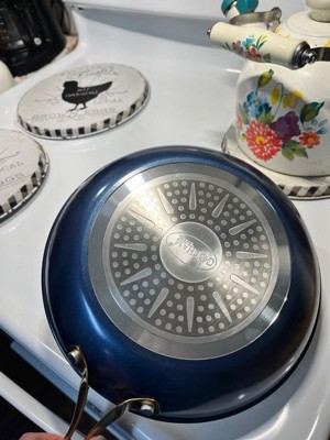[This review was collected as part of a promotion.] I want to start off by telling you the colors in this set are absolutely beautiful! Brilliant blue with ceramic inside and gold accent trim on the lids and handles. It makes cooking easy with the nonstick ceramic and distributes heat evenly for an evenly cooked meal! I think the best feature of this set is the fact you can cook stove top as well as stick it right in the oven with temps up to 500 degrees! It serves two purposes 😍 easy clean up. And the matching utensils are great too! Well worth the price! Great quality!