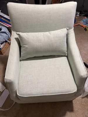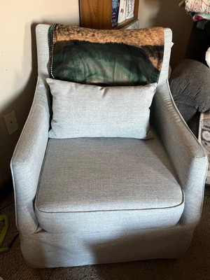 [This review was collected as part of a promotion.] I received an incentive from Influenster and Martha Stewart in exchange for my honest product review. This is my new favorite seat in my home! I'm really trying to update my home and this fits perfectly with the kind of vibe I'm going for. I'm not sure if the color is light blue or Beige, maybe hints of both colors. The material is soft, very durable and every stitch line is perfect. I cannot find one flaw or anything I don't like about this chair. It's so comfortable and I love that it swivels. The added decorative pillow really gives this chair more added comfort and it's a perfect rest for my book or morning coffee. My kids are trying to take my favorite chair and I'm probably going to be picking up a couple more of these. Great job Martha Stewart, this is a 10 Star Chair and I love it!