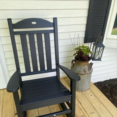 Outsunny Outdoor Rocking Chair, 2PCs Traditional Slatted Porch Rocker with Armrests, Fade-Resistant Waterproof HDPE for Indoor & Outdoor, Black