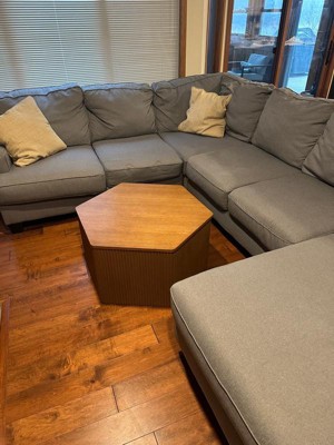 Ink+Ivy Honey Fluted Hexagon Coffee Table Contemporary Living Room Pedestal with Storage, Adjustable Feet
