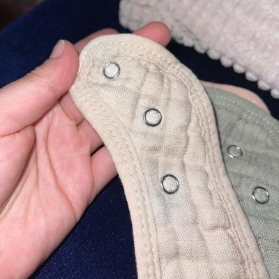 These bibs are stylish, softest fabric and absorbent. The best part is that it has 3 snaps which make it adjustable! A great purchase!