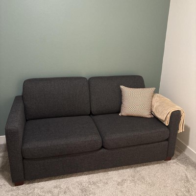 This pillow looks just as it does in the photos. I was pleasantly surprised by the firmness of it and how it holds itself up. The fabric is a little itchy on both sides, which is a bummer if you are using it for more than decoration and wanting to lay on it. The checkers do not follow on the backside but you cannot tell when the pillow is sitting up because of the sturdy structure. I received an incentive to write this review.