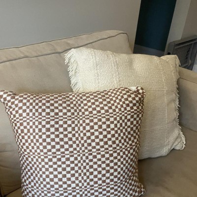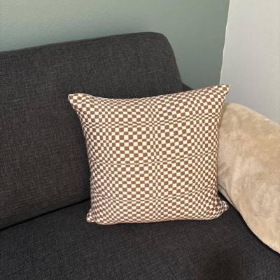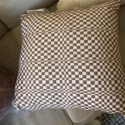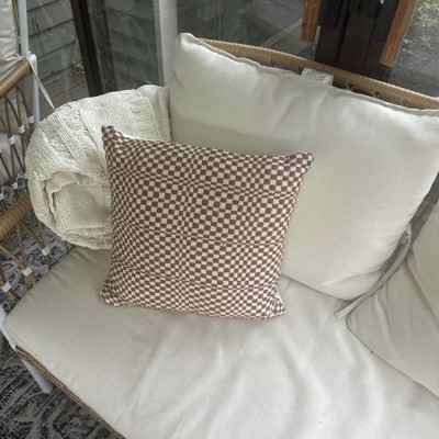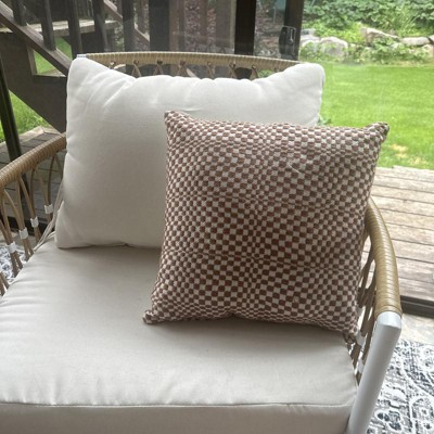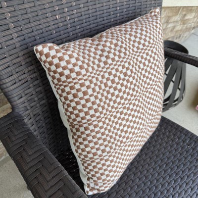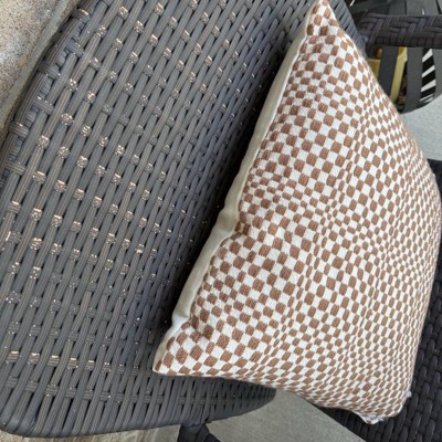 18"x18" Retro Checker Woven Square Outdoor Throw Pillow Brown - Threshold™