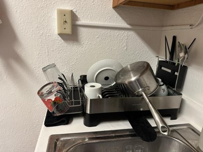 - [Quality Stainless Steel] Built to withstand years of frequent use, this dish rack is made with brushed stainless steel which is rustproof, resistant to oils and fingerprints, and easy to clean with a simple wipe