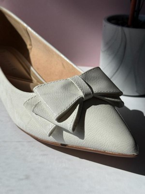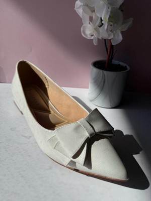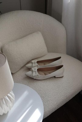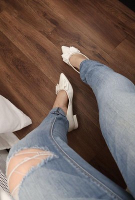 [This review was collected as part of a promotion.] Journee Collection Ophelia low block white ballet flats are made with vegan leather and are so pretty. The inside cushion was what sold me. It feels like i am walking on clouds. They are made with separated cushions to pad the ball and the heel of your feet for max comfort. Its genius especially if you need to walk a lot in your office or standing to show houses. Its perfect to wear with or without socks. There so comfortable and I am loving this look and design on the bow in the front. It so fun and super feminine. I didnt need to break it in much so it was ready to wear right away. The sizing worked out perfectly for my feet. I was very happy when I put them on cause it elevated my outfit to such a chic look. I would buy this in other colors and styles.