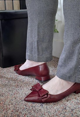 [This review was collected as part of a promotion.] I was gifted these super cute pair of shoes. These shoes are super nice! They have a nice croc print to the synthetic "leather" and the color, Oxblood is so classy. I don't normally wear pointed shoes but have fallen in love with these. I normally wear an 11, I opted to try these in a 10w, thinking they would be narrow due to the point but I never wear a wide. I was spot on with sizing, these shoes fit perfectly. These shoes have some nice sole padding in all the right places that makes them comfy and a nice covered block heel. Perfect little shoes for the office.