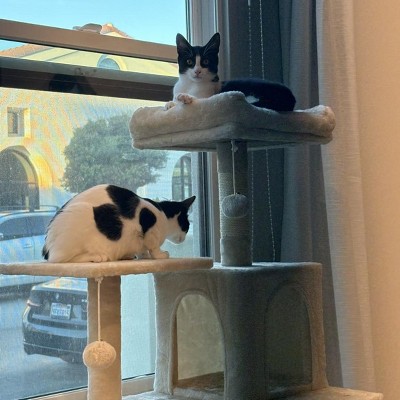 - [For Multi-Cat Households] Featuring 2 top perches and a comfy cat cave, this cat tree offers multiple cozy places for each of your little furballs to nap and relax
