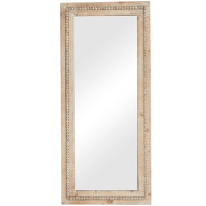 Wood Distressed Wall Mirror with Beaded Detailing Brown - Olivia & May