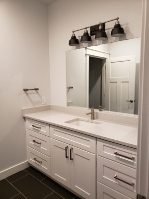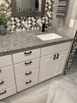- Complete the look with matching cabinet knobs, drawer pulls and bath hardware from the Amerock Blackrock collection