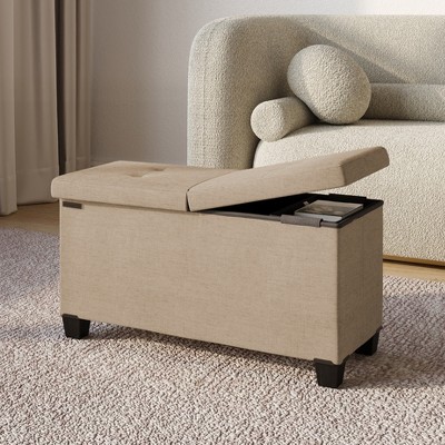 - Durable linen fabric blends seamlessly with any décor and works as a footrest, entryway bench, or end-of-bed seat,