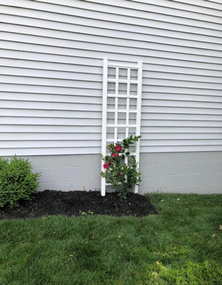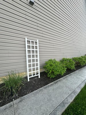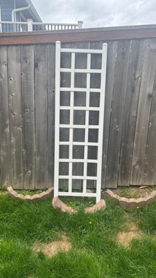 [This review was collected as part of a promotion.] This is a handy trellis which is better suited in a narrow space. Outdoors, 22” feels a bit lacking, as most people use a trellis as a focal point or for privacy. Putting the trellis together is relatively easy, and can be done without the recommended mallet/hammer (unless you’re anchoring it to 1” stakes like I did). The PVC goes together easily, though the ultimate weaved look feels a little odd with only two vertical tines. A third would make the trellis more aesthetically pleasing, at least in this size. My personal aesthetics aside, the only real “fault” is in the PVC anchoring screws used for the x-axis pieces. These could really benefit from having a washer included, because over time these holes are going to let in water, or stain. I may get some silicone washers myself.