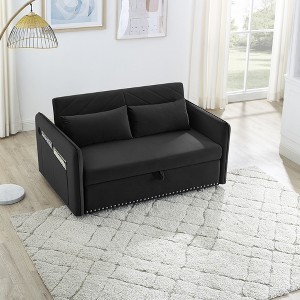 55" Pull Out Sleeper Sofa Bed, Velvet Upholstered Loveseat Sofa Couches with Lumbar Pillows, Black-ModernLuxe