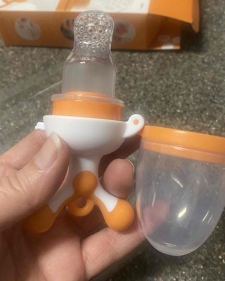 I love how easy it is to use this! It's big and ca n push the food up . I don't have to deal with refilling much . My baby loves it. Good product easy to clean and mess free I would recommend it to moms. Easy to hold. Safe way for the baby to get solids and keeps them busy also I am happy knowing my baby will not choke and develops motor skill