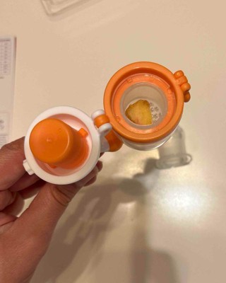 I was very excited to try the quack fruuti baby fruit feeder. It is good for kids six months and older BPA free. However, it is quite complicated to just give your baby fruit. There are multiple parts that need to be cleaned and taken apart after each use. The baby will also have to spin the bottom to push the fruit up through, the top. I am happy to just leave soft fruits and front of my child or feed him with a spoon. I received an incentive to write this review.