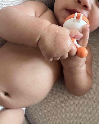 This genius design is perfect for little hands, and it’s so so much easier to clean than similar products. We used it starting around 6mo, and it buys me a few minutes of peace while I’m getting a meal ready for my little one. It fully disassembles to wash easily, and I love that there are multiple sizes to grow with my baby. Super easy for little hands to grab.