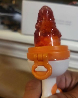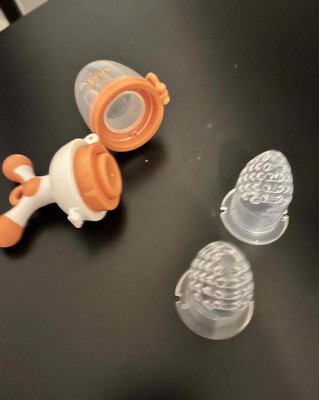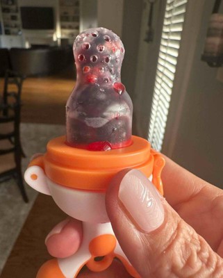 I love this twist to eject design. It’s easy to take it apart and clean it. There is 3 durable silicone tips. This is perfect for babies. You can use frozen fruit if they’re teething. This was present for my friend baby. She absolutely loves it. She loves to play with it even when she is not eating fruit. I would definitely recommend this product. Not expensive and great quality. I received an incentive to write this review.