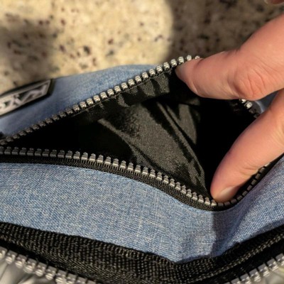Zipper is broken. Top of container is torn on one corner around zipper.