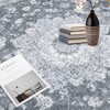 A: The rug features a vintage medallion design that complements various home decor styles.