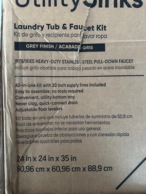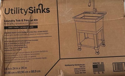 UTILITYSINKS Plastic 24" Freestanding Compact Workshop Utility Tub Sink, Grey