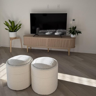 Storage Round Ottoman Brown Boucle - HomePop: Upholstered Vanity Stool, Footrest with MDF Frame