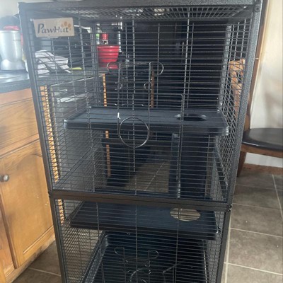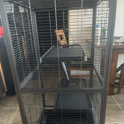 This cage offers a spacious and sturdy environment for small pets, making it ideal for rats, ferrets, and even chinchillas. While assembly can be challenging due to unclear instructions and misaligned holes, many guests find the effort worthwhile once set up. The design includes multiple levels and platforms, providing ample room for pets to explore and play. Overall, it is a great value for pet owners looking for a durable and functional cage.