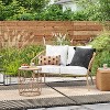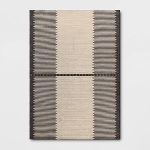 Set the stage for al fresco gatherings with this Neutral Lines Outdoor Area Rug from Threshold™. This rectangular area rug is decked out in a woven pattern of neutral stripes to add a timeless touch to your existing decor. The outdoor rug features a flat-pile construction with latex backing, making it a great addition to higher-traffic areas, and you can simply hose it clean with water for easy upkeep.