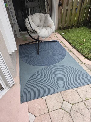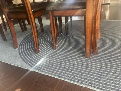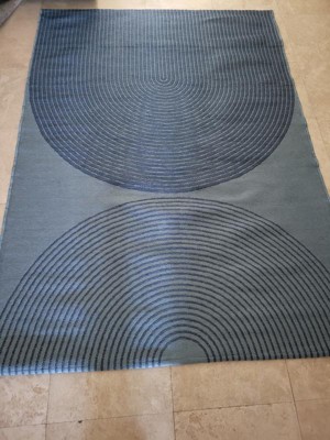 A: The rug is rectangular in shape, measuring 7 feet by 5 feet.