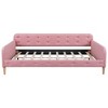 A convenient design gets a modern update with this tasteful daybed. Crafted from solid pine wood and MDF, this bed is upholstered in linen fabric over foam filling. This daybed strikes a soft silhouette with a high side board and biscuit-style button-tufting. Square recessed arms frame space for a mattress of your choice. We love that this daybed is versatile enough to be used as a couch during the day and accommodate overnight guests in the evening.