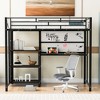 Made from sturdy metal, this metal loft bed with desk has a clean silhouette that will match any room décor. This loft bed is designed with safety in mind, with a ladder integrated into the bed frame for easy access. The space under the loft bed is a great place to read, do homework or play and create your own world to explore. Comes with a clean whiteboard, you can draw what you like with markers and create whatever you like.
