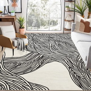 Area Rug Modern Stripes Print Washable Rug, Black Beige
