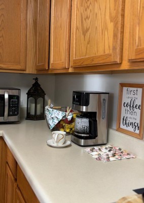 [This review was collected as part of a promotion.] Nice coffee maker. Nothing extremely special about it though. I was disappointed in the clock setting it works in military time so 24 hour setting instead of 12. Like really? My daughter worked in the ER so she always referred to military time ( not hard to figure out) but who wants to on the coffee maker? I mean great as an option, but not your only option. 24 hour time set easy enough to do, now you can set your timer to make coffee for you. With 2 hour auto shut off ( a must ) one less thing to worry about. I love my glass pots.. yes hate anything else, I like seeing how much is in my pot. The craft or pot pours easy no spills I like that. The lid lifts up you put in your grinds no swivel, mah.. don't matter to me either way. Maker comes with a nice little scoop. You can pick your strength of coffee regular or bold brew. 10 cup brew... nice it's in between a small 5 cup and a Large 12 cup. You can pour a cup while brewing still, yes it's a MUST! Who has time on some mornings to wait for a whole pot? It's a nice coffee maker. It works as it should don't scorch your brew.... some cheap brands scorch your beans making the taste different. So it's a nice medium with this drip pot coffee maker. All said and done it's pretty good.