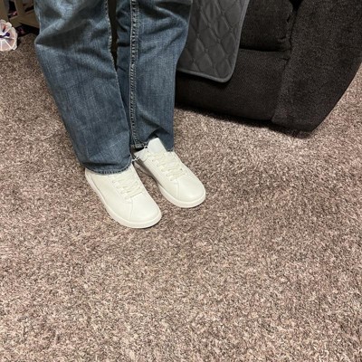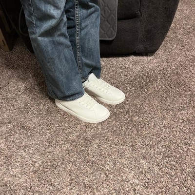 Complement your casual and formal outfits with these Scout Sneakers from Goodfellow & Co™. These white low-top sneakers showcase a flocked polyurethane and polyester upper and leather and TPR outsole. Featuring a lace-up design with a mesh tongue and collar lining, these medium-width sneakers include a cushioned footbed for extra comfortable wear.