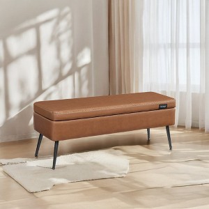 VASAGLE EKHO Collection - Storage Ottoman Bench Entryway Bedroom Bench 15 Gallons Safety Hinges Loads 660 lb Caramel Brown