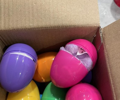 The 12 plastic eggs were cramed in a small box and every one of them had popped open. I had to try and put them all back together. Not expecting that.
