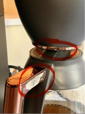 [This review was collected as part of a promotion.] Plating chipping from coffee pot and bezel under grind basket. My mother in law has same unit and the chipped plating cut her hand. Make good coffee but after 8 months it looks 20 years old.