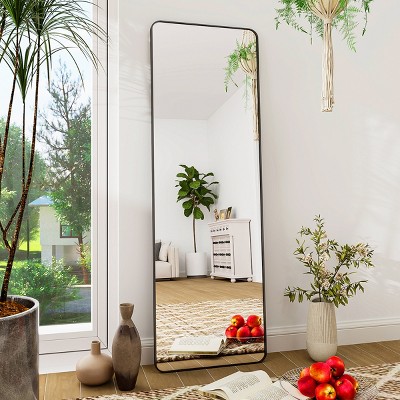 BEAUTYPEAK Rectangle With Rounded Top Full Length Mirrors 64"x21",Black
