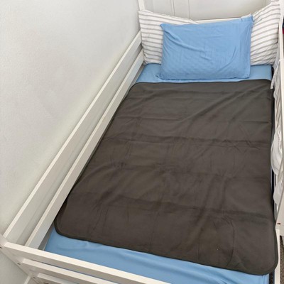 I got this because my toddler has had the flu and the postnatal drip is causing her to cough so hard during the night that she sometimes throws up. I needed a solution that would be quick to swap out so I can get her back to bed quickly, but still comfortable enough to sleep on. This blanket is just that. It is fleece lined on the surface with the waterproof layer in between. I got the twin size to fit on my toddler’s twin floor bed. It has been a lifesaver.