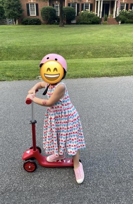 This is my honest review about this scooter that radio flyer sent us as a free sample. First of all, this is super cute, I have a 3 year old and a 5 year old, both kids LOVE this scooter so much, that they keep arguing over it. The scooter is compact, wheels light up when riding it, handle can adjust to both my kids height difference, which is a HUGE plus for us. 10/10 recommend this scooter, considering purchasing a second one, so there is no arguing involved 🫣