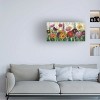 This ready to hang, gallery-wrapped art piece features a row of orange, red, and purple flowers.Silvia Vassileva pursued her love of art at the Academy of Fine Art in Bulgaria, where she earned both her bachelor's and master's degrees. She spent six years painting and exhibiting her work in Japan before moving to the U.S. Silvia describes her style as very free and bold. She makes her paintings come alive by using contrast and unusual color palettes. Silvia's home studio, which she designed herself, is bright, contemporary and minimalist.Giclee (jee-clay) is an advanced printmaking process for creating high quality fine art reproductions. The attainable excellence that Giclee printmaking affords makes the reproduction virtually indistinguishable from the original piece. The result is wide acceptance of Giclee by galleries, museums, and private collectors. Gallery wrap is a method of stretching an artist's canvas so that the canvas wraps around the sides and is secured a hidden, wooden frame. This method of stretching and preparing a canvas allows for a frameless presentation of the finished painting.Whether it's a contemporary, rustic, modern, or traditional style decor, Trademark Fine Art offers a variety of high-quality, carefully built wall art that will surely complement any style. We provide an abundance of art themes that range from fascinating abstracts to breathtaking landscapes, in an assortment of sizes that will certainly bring excitement to any area of your home. From the bedroom to the living room, or even the office, Trademark Fine Art makes professionally handcrafted, ready to hang wall decor that will be admired for years to come!