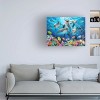 This ready to hang, gallery-wrapped art piece features a nautical setting filled with dolphins posing.Described as the artistic master of adorable animals, both wild and tame that brim with personality, the kind that makes a person smile. Working in the Art Licensing industry for over 36 years his delightful images can be found reproduced and giving joy to many, on numerous products throughout the world.Giclee (jee-clay) is an advanced printmaking process for creating high quality fine art reproductions. The attainable excellence that Giclee printmaking affords makes the reproduction virtually indistinguishable from the original piece. The result is wide acceptance of Giclee by galleries, museums, and private collectors. Gallery wrap is a method of stretching an artist's canvas so that the canvas wraps around the sides and is secured a hidden, wooden frame. This method of stretching and preparing a canvas allows for a frameless presentation of the finished painting.