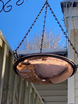 Sunnydaze Outdoor Hand-Hammered Hanging Bird Bath or Bird Feeder with Detachable Bowl and Hanging Chain - Copper - 17.5"