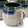 Beautify your morning cup with this Meritage lexington 4 piece 20oz stoneware coffee mug set. This set comes with four mugs that feature a one of a kind, earthy, multi-colored design that will make your coffee or tea feel a little more special. Ornate handles and belly shaped construction add a distinctive look to these mugs. Reactive glaze finish ensures that each piece varies in color and pattern, allowing you to get four unique looks that are also cohesive. Dishwasher and microwave safe stoneware for easy cleanup and reheat.
