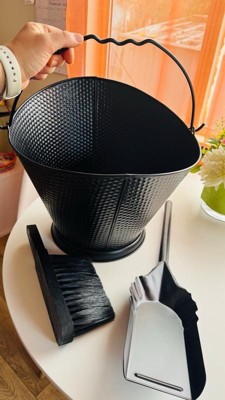 [This review was collected as part of a promotion.] This 5-Gallon Fireplace Ash bucket set is great! It's a nice big size to get all the ash and keeps my fireplace looking nice. I had to bend the handle for the shovel because my fireplace is top load, but it still looks amazing, and it works amazing as well!