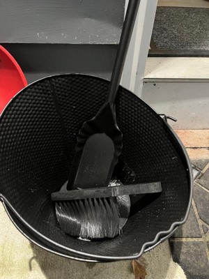 Sunnydaze Indoor/Outdoor 5-Gallon Iron Coal and Ash Bucket with Shovel and Brush - Black