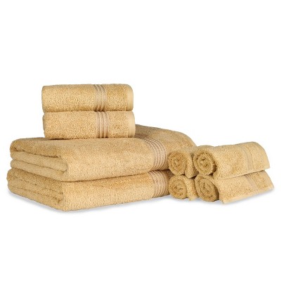 Turn washing your hands into a luxury experience with the Cotton Modern Geometric Jacquard 550 GSM Hand Towel Set of 6 by Blue Nile Mills. Our medium weight cotton towels provide comfort, durability, and versatile absorption, perfect for cleaning up spills or to effortlessly dry your hands off. These plush and fluffy towels sop up moisture to help get you dry quickly. Featuring a geometric jacquard design, these elegant towels are available in gold, blue, platinum, and charcoal color options to seamlessly match your home decor style. This set of daily essentials includes 6 hand towels to easily stock your bathroom or kitchen.